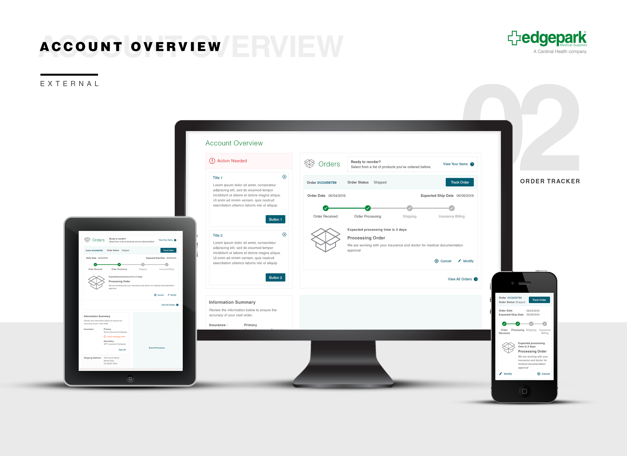 An Enterprise application for Edgepark to manage their order processing and continuous engagement of customers without going through the call center and their client managers. After Cardinal health acquired Edge park, my company was brought onboard to define a vision as far forward as possible so it takes years for their competition to catch up. As a part of this engagement i was on-boarded as a Senior UX designer, with 3 other designers working remotely.